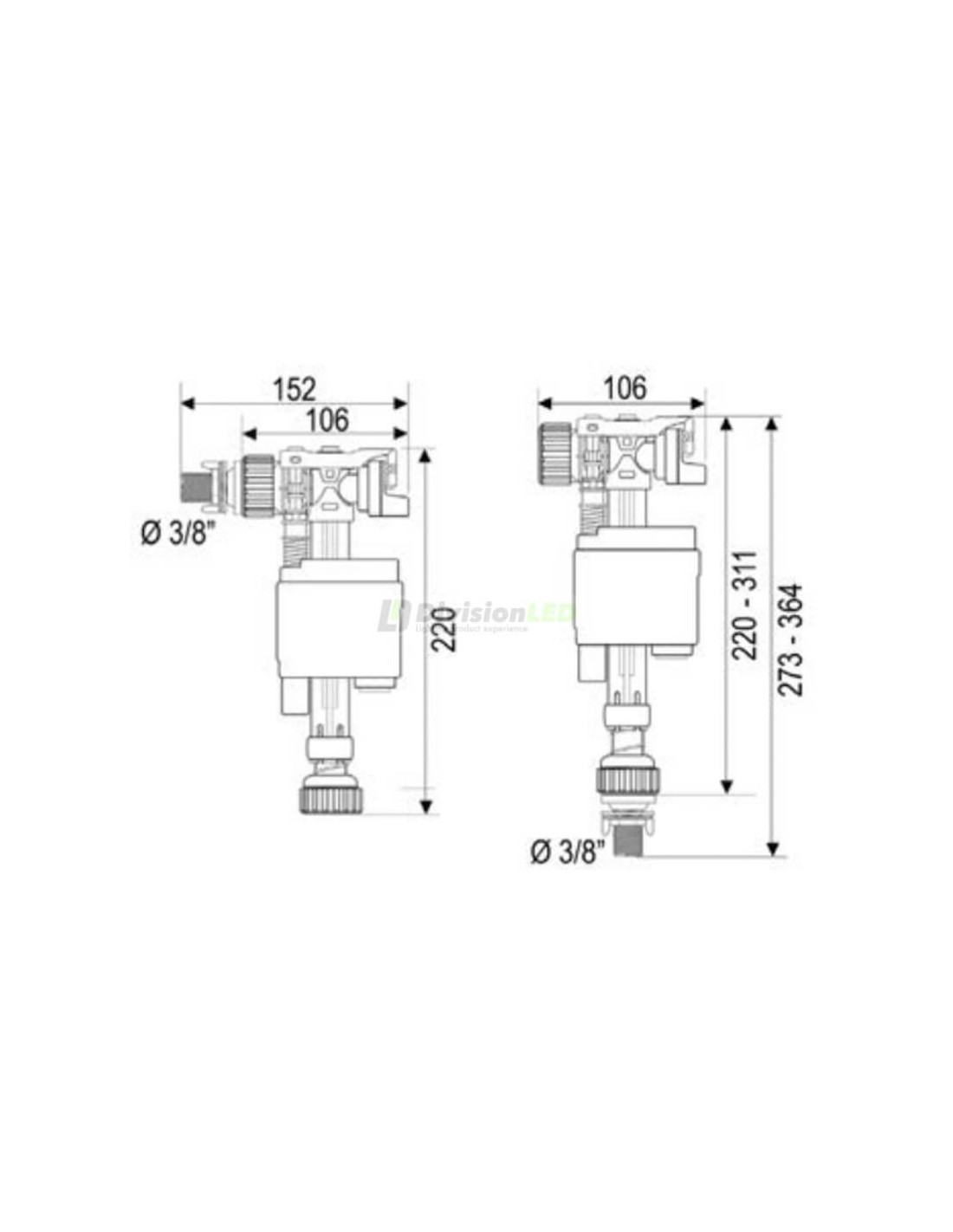 - Entrada lateral o inferior a 3/8" de latón.