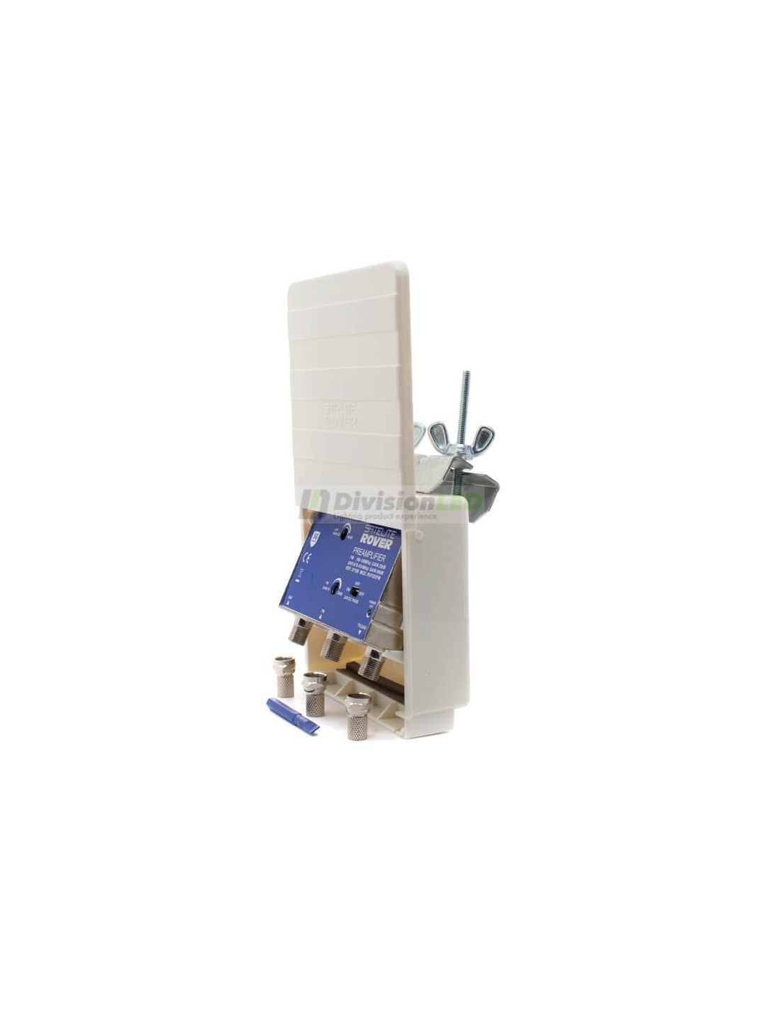 • Este amplificador de mástil tiene incorporado un cofre resistente especial para instalaciones en exterior.
