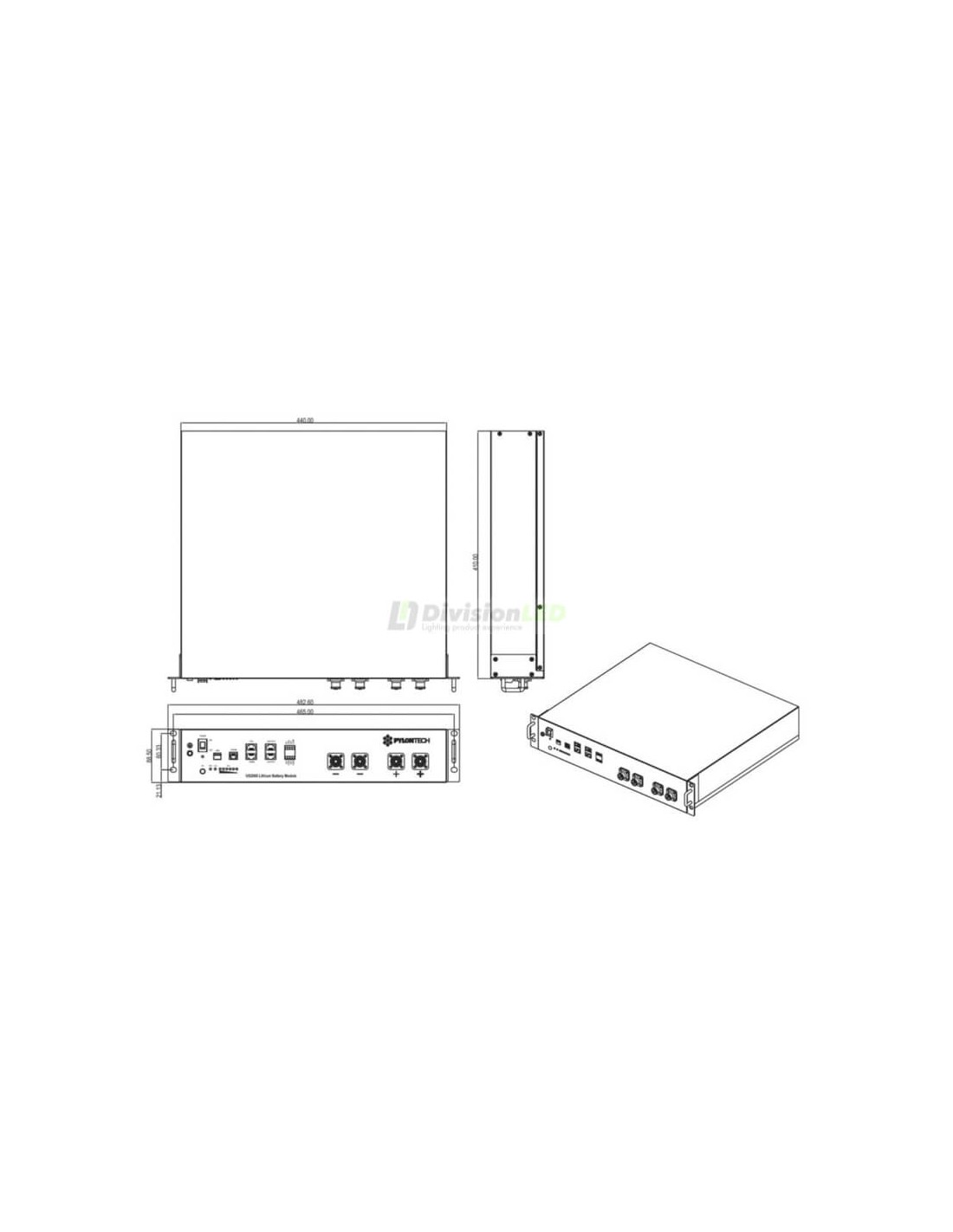 Esquema Pylontech US3000C Pack 4 Baterías de litio 3550WH 48V