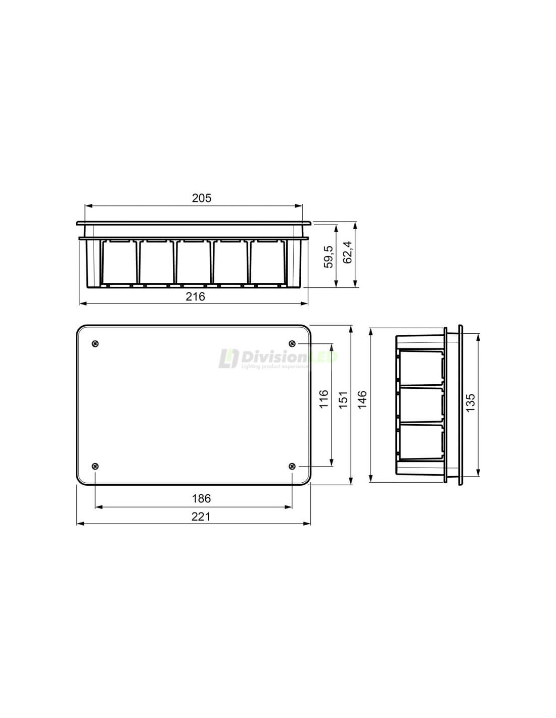 Características SOLERA 314 Caja registro o conexiones empotrar 200x130x60 tapa blanco con tornillos