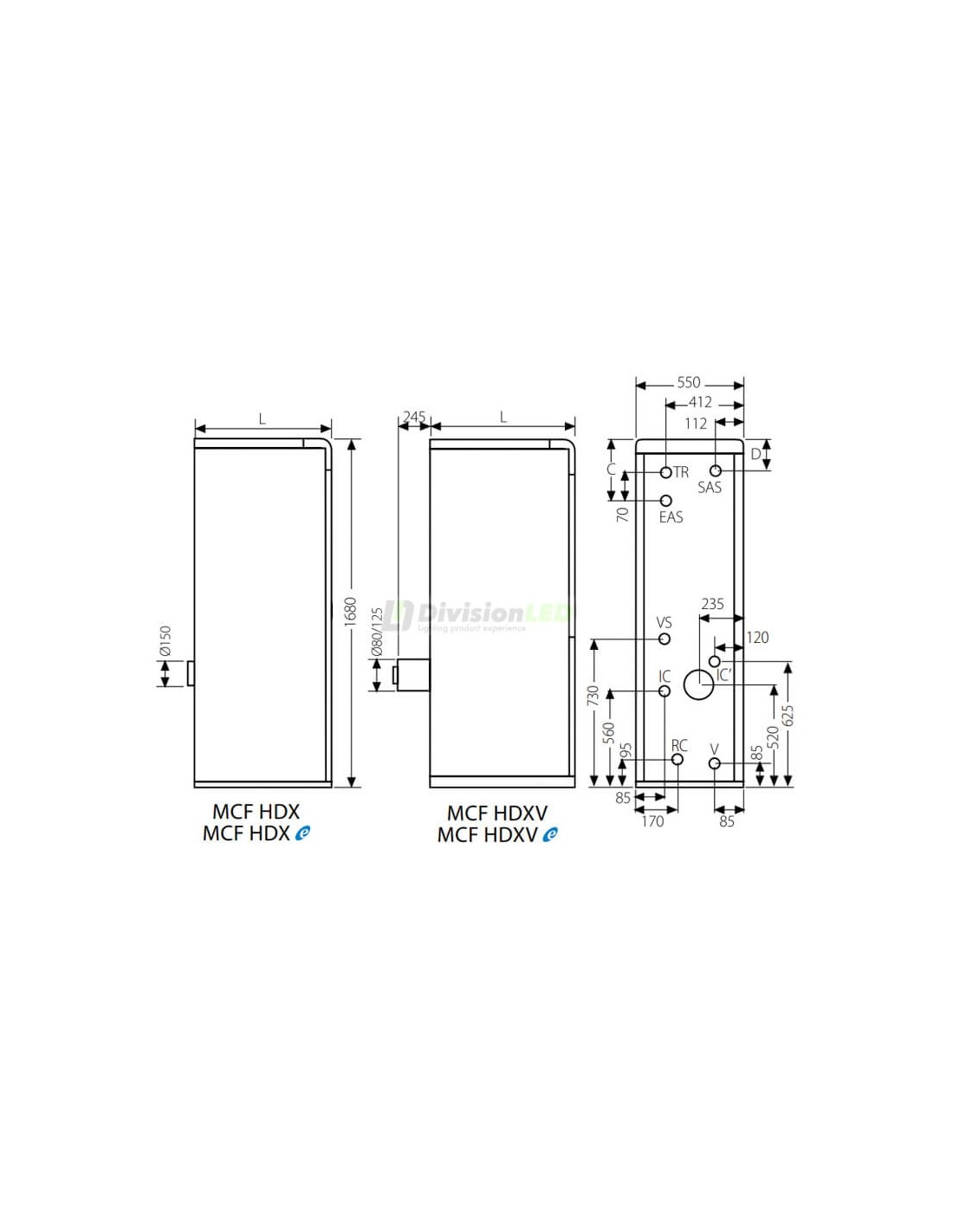 - 1680x550x800 mm