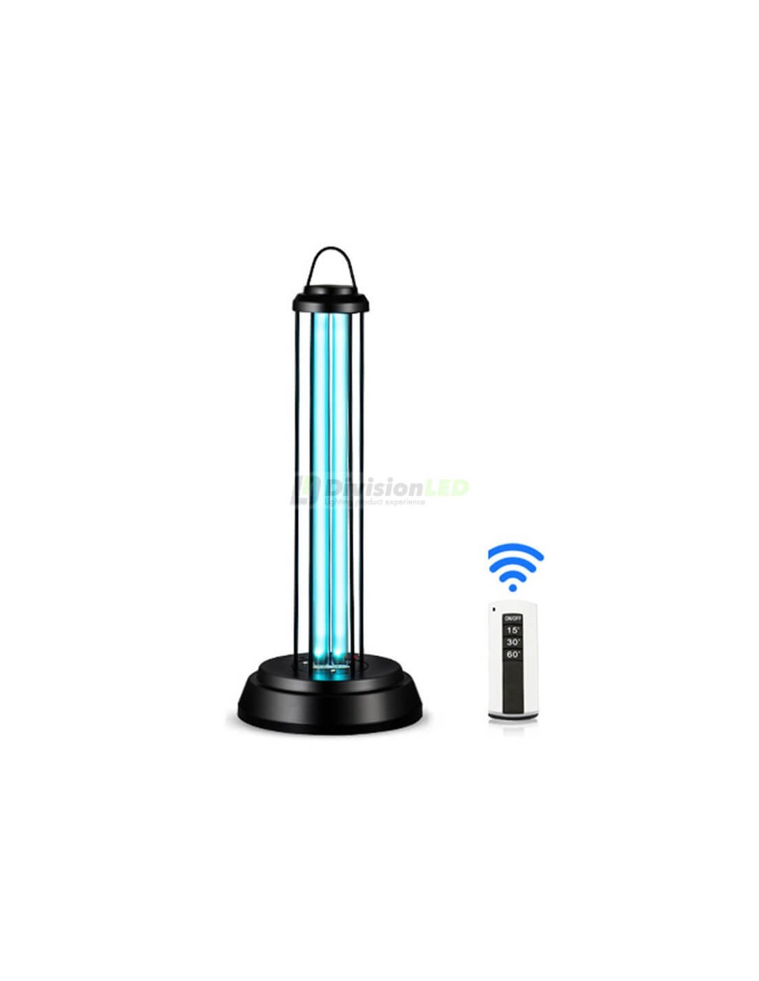 La Lámpara de desinfección UV con mando a distancia está pensada para la esterilización de estancias y purificación y desinfección del aire. Su principal funcionalidad es la de eliminar gérmenes, virus, ácaros y formaldehído por medio de la luz ultravioleta y generando cierta cantidad de iones de ozono. Su forma de trabajar es atacando el ARN y el ADN de los microorganismos mediante la luz ultravioleta y purificando el aire mediante la generación de ozono. Cabe destacar que tiene una cobertura de 360° en la estancia. Por este motivo proporciona a la estancia o superficies un aire limpio, agua purificada y superficies desinfectadas. Pertenece a la familia de lámparas germicidas muy extendidas para combatir la COVID-19.
