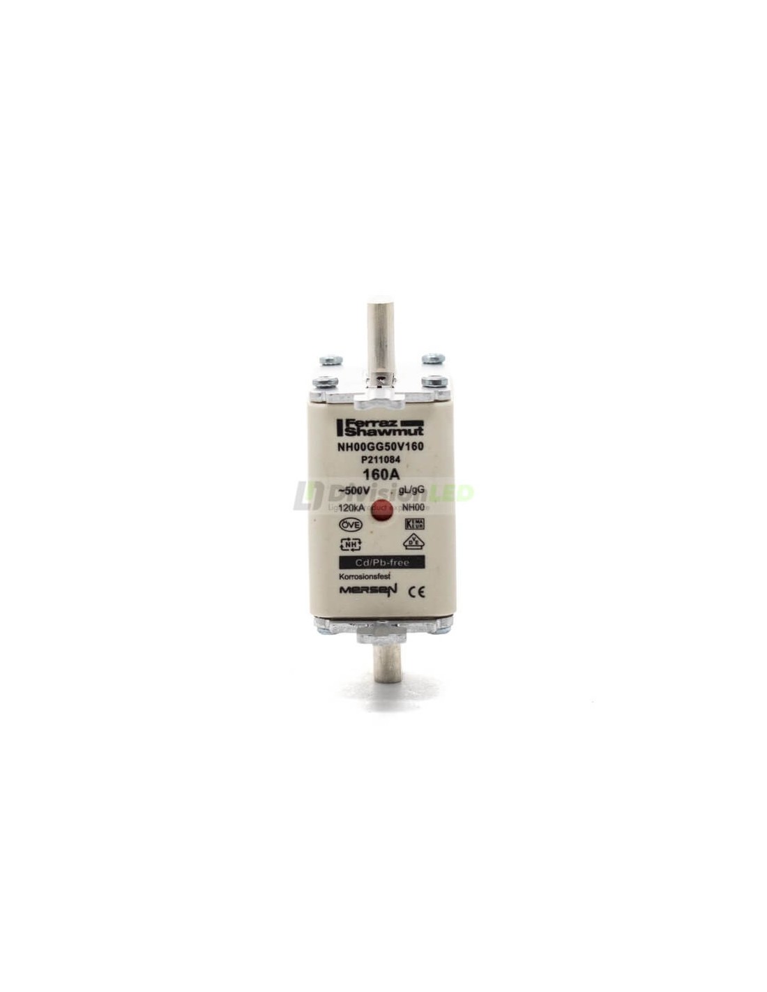y cumplen con la normativa europea actual. Además está fabricada en materiales cerámicos resistentes a elevadas temperaturas para aumentar su seguridad. El fusible NH00 160A tiene unas dimensiones de 125mm de alto, 30 de ancho y 60mm de fondo.