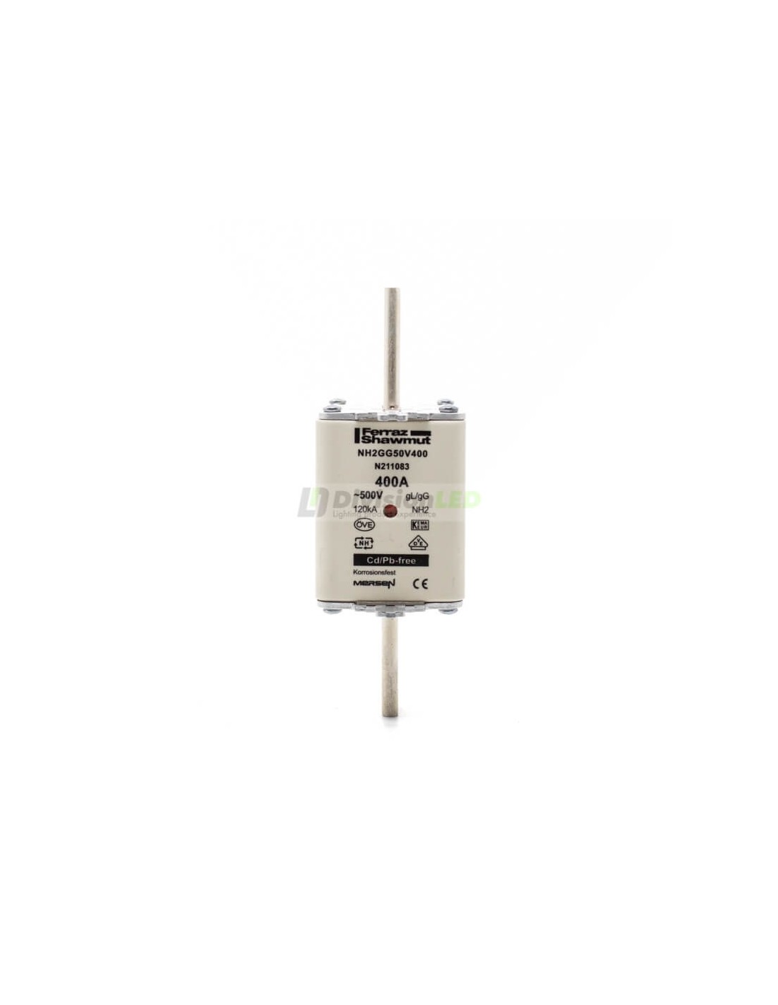 y cumplen con la normativa europea actual. Además está fabricada en materiales cerámicos resistentes a elevadas temperaturas para aumentar su seguridad. El fusible NH2 400A tiene unas dimensiones de 150mm de alto, 52 de ancho y 68mm de fondo.