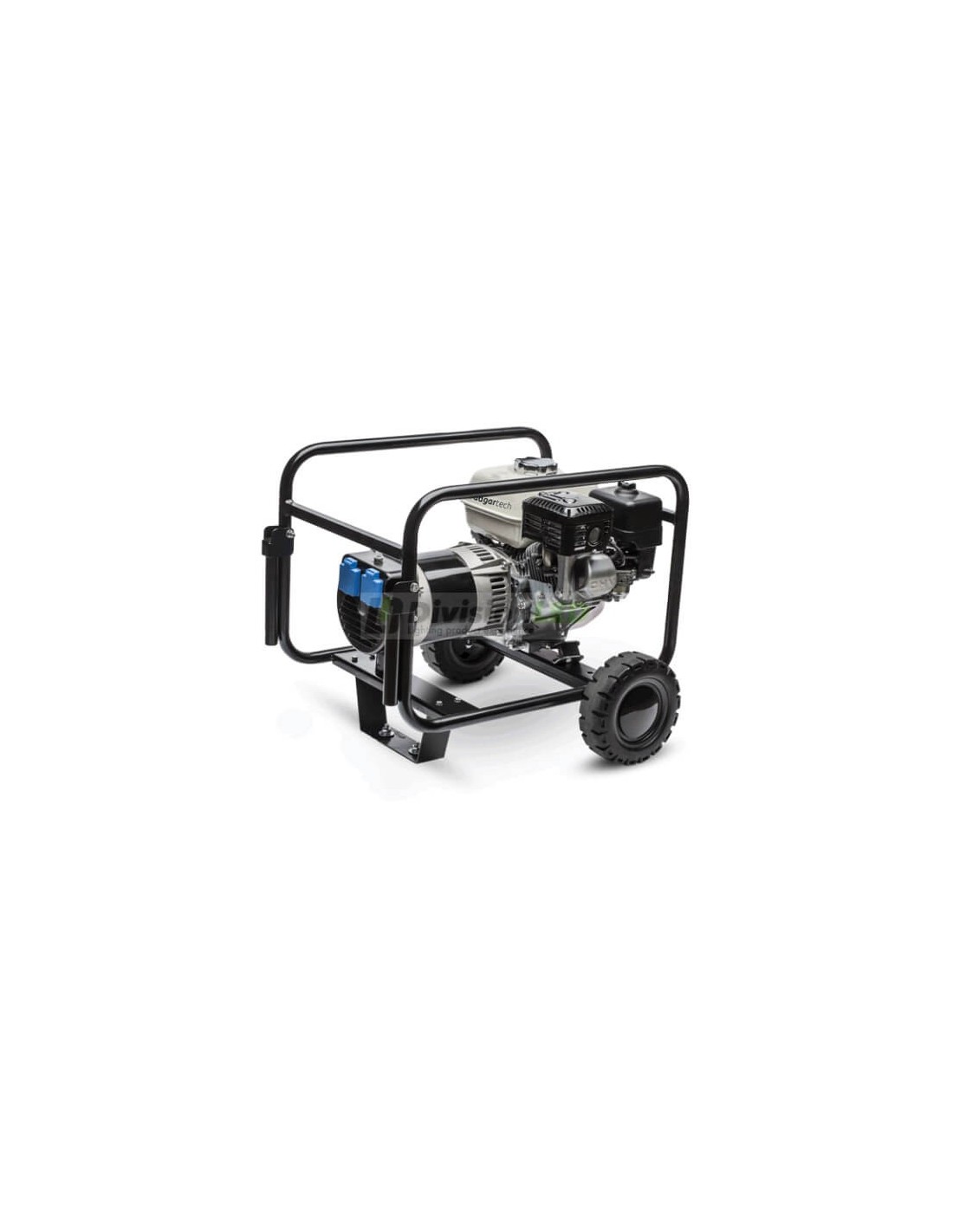 El grupo electrógeno portátil 3.1kVA se utiliza como apoyo en las instalaciones solares pequeñas y desarrolla una potencia de 2480W. Su uso es habitual para cubrir picos puntuales de consumo. Además el grupo electrógeno portátil 3.1kVA es usado en periodos largos de mal tiempo o cuando cae la radiación solar. Es monofásico con chásis estático, tiene un voltaje de 230V y un peso de 40Kg . Su motor gasolina es de 3000 rpm y tiene un depósito de 3 litros. Su arranque es manual, si necesita que su arranque sea eléctrico, consúltenos sin problemas. Además podemos completar el grupo con un kit de transporte, un alternador AVR y un cuadro diferencial. La imágen de este generador es orientativa.