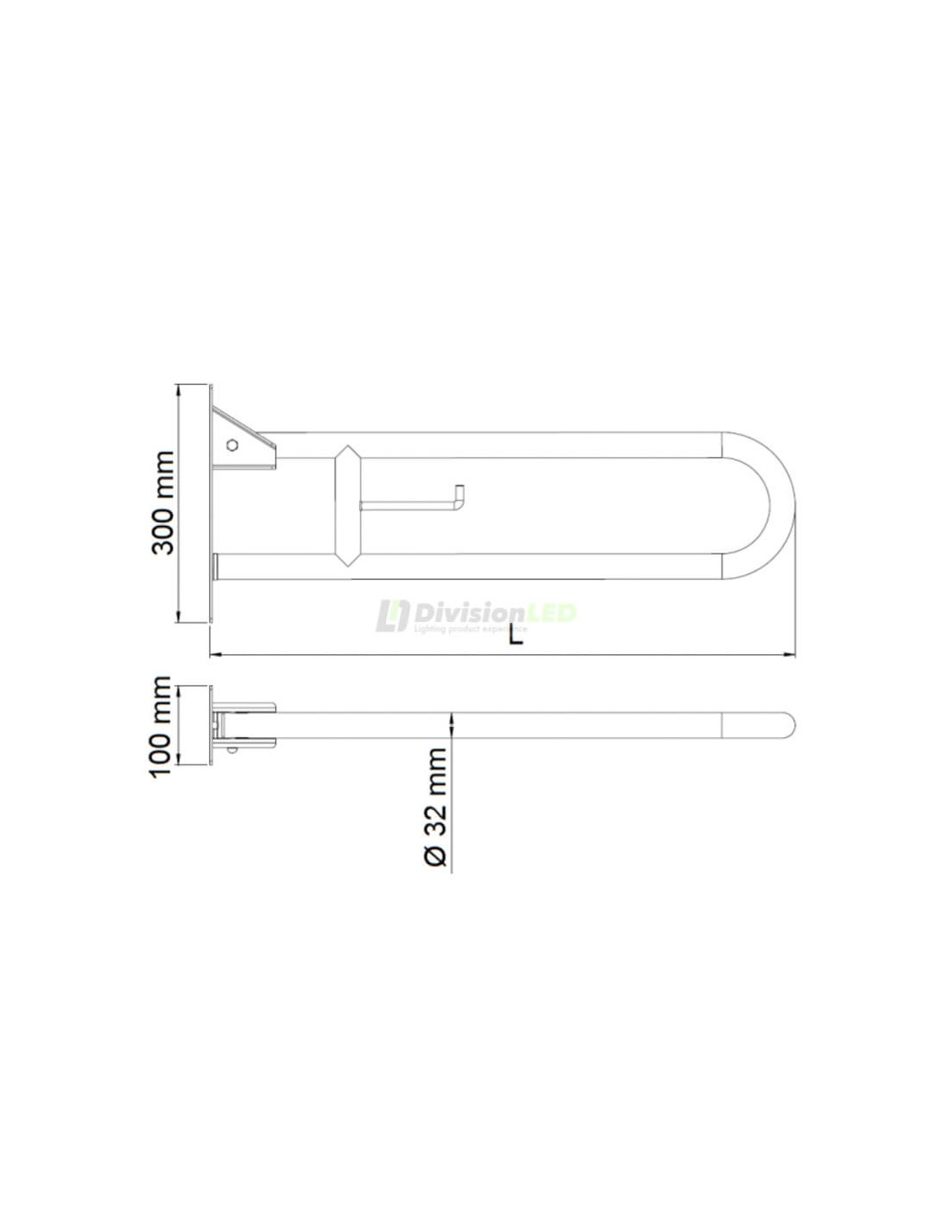 Esquema Mediclinics BG0800CS barra de apoyo abatible vertical satinada 800