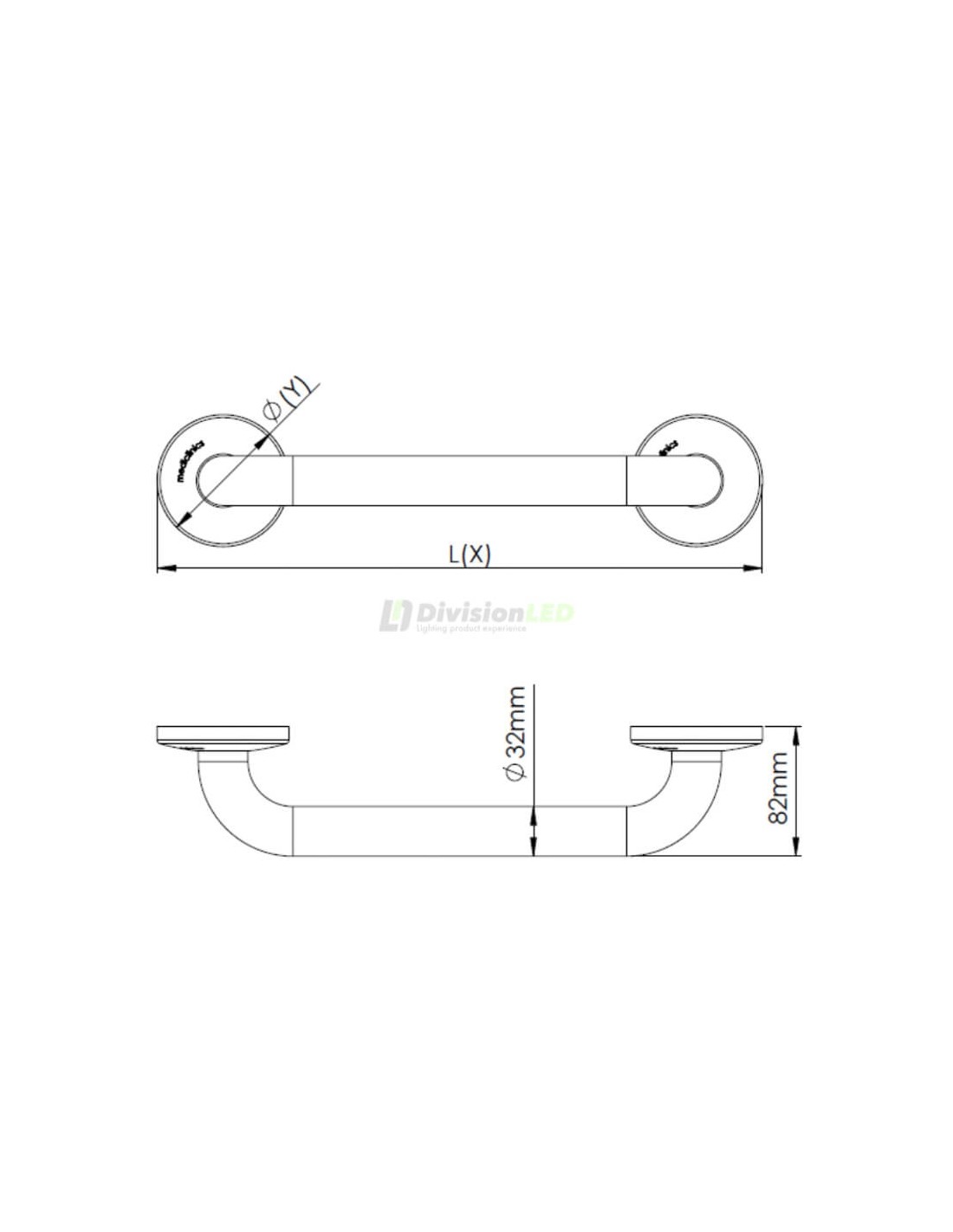 Esquema Mediclinics BR2600 barra apoyo recta 695mm acabado blanco