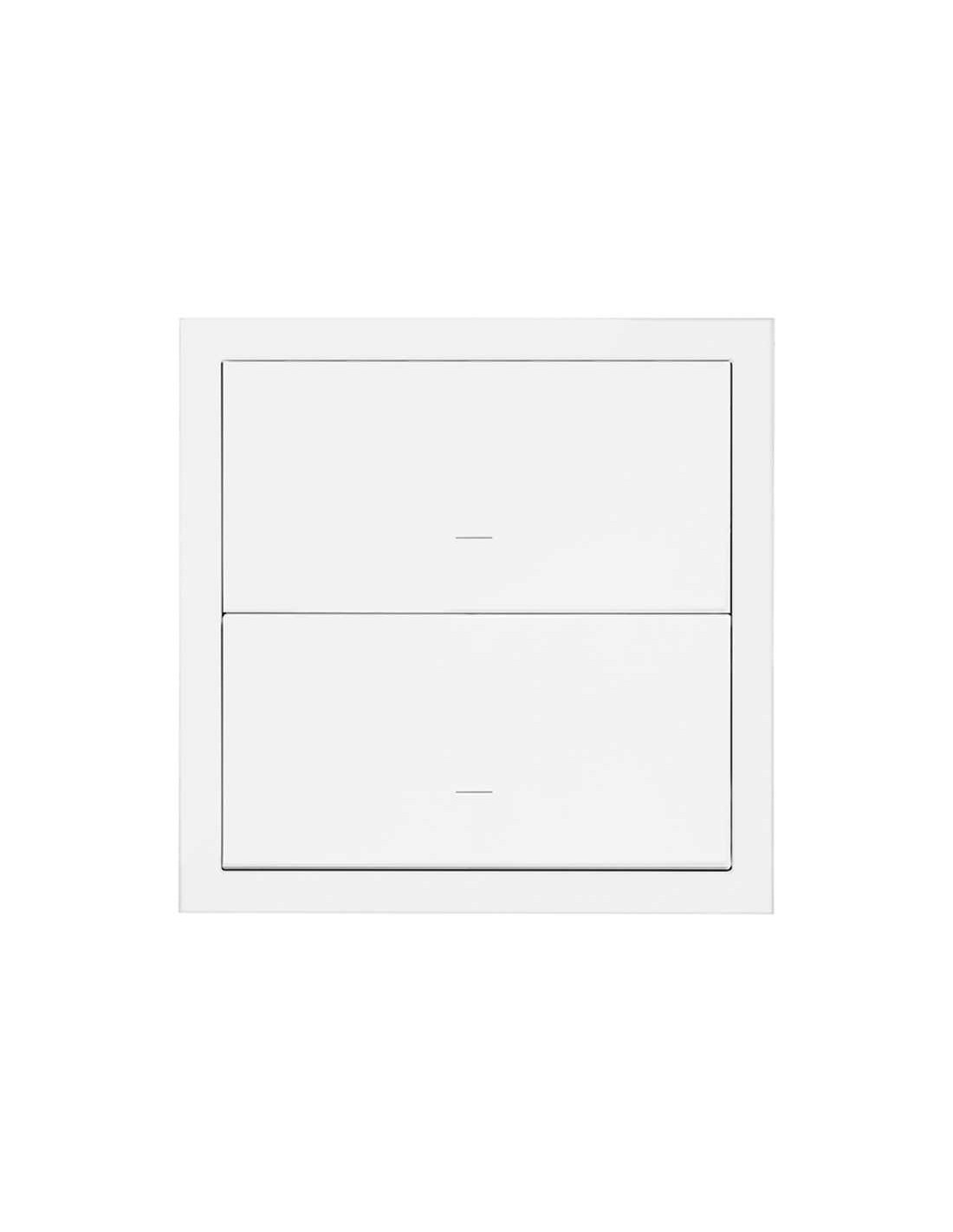 Kit frontal para 1 elemento y 2 teclas, de color blanco y con un elegante acabado mate, compuesto por dos teclas individuales y un marco, de la serie Simon 100. Ofrece embornamiento por corte (1 clic), un sencillo sistema con el que no es necesario pelar ni trenzar los cables. El kit front es intuitivo, sencillo, cómodo y fácil de instalar y usar, han querido crear una interfaz para ser usada con sus propias manos. Además, las teclas se quedan siempre en la misma dirección, así es más fácil de controlar y recordar. Posee una intensidad de 10AX y un voltaje de 250V, y funciona con pulsador-basculante. Su instalación es muy sencilla y cómoda, sólo hará falta empotrar la pieza, no necesita ninguna herramienta especial. El material con el que está diseñado viene preparado para alcanzar temperaturas que pueden oscilar, sin ningún tipo de inconveniente, entre los 5 y 40º, y puede llegar a soportar hasta un máximo de -25 y 50º.