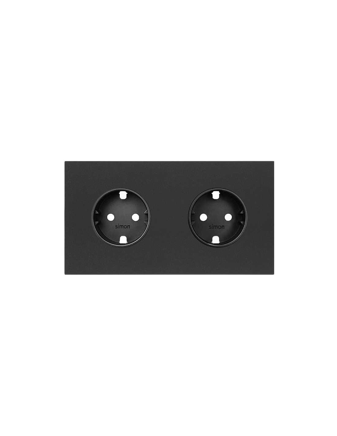 Este es un kit frontal para 2 elementos que incluye 2 bases de enchufe estilo schuko, con un acabado en color negro efecto mate. Pertenece a la gama de kits de toma de corriente. Su estética de líneas simples y sobrias permite que el artículo se adapte a la perfección a cualquier entorno. Es muy útil, elegante y funcional. La instalación no puede resultar más fácil, rápida y segura gracias al innovador sistema de conexión de cableado que incorpora, sin herramientas y sin tornillos. Para embornar, no es necesario pelar cable porque el contacto tiene forma de cuchilla. Al presionar la palanca, una vez introducido el cable, las cuchillas seccionan la parte del aislante hasta conseguir hacer contacto con la parte activa del cable. Funciona por inserción y es apto para empotrar. El kit front está incluido en la serie Simon 100, una colección innovadora en lo que respecta a usabilidad y estética. La colección hace firme su apuesta por la simplicidad, ofreciendo los mecanismos más intuitivos de la marca.