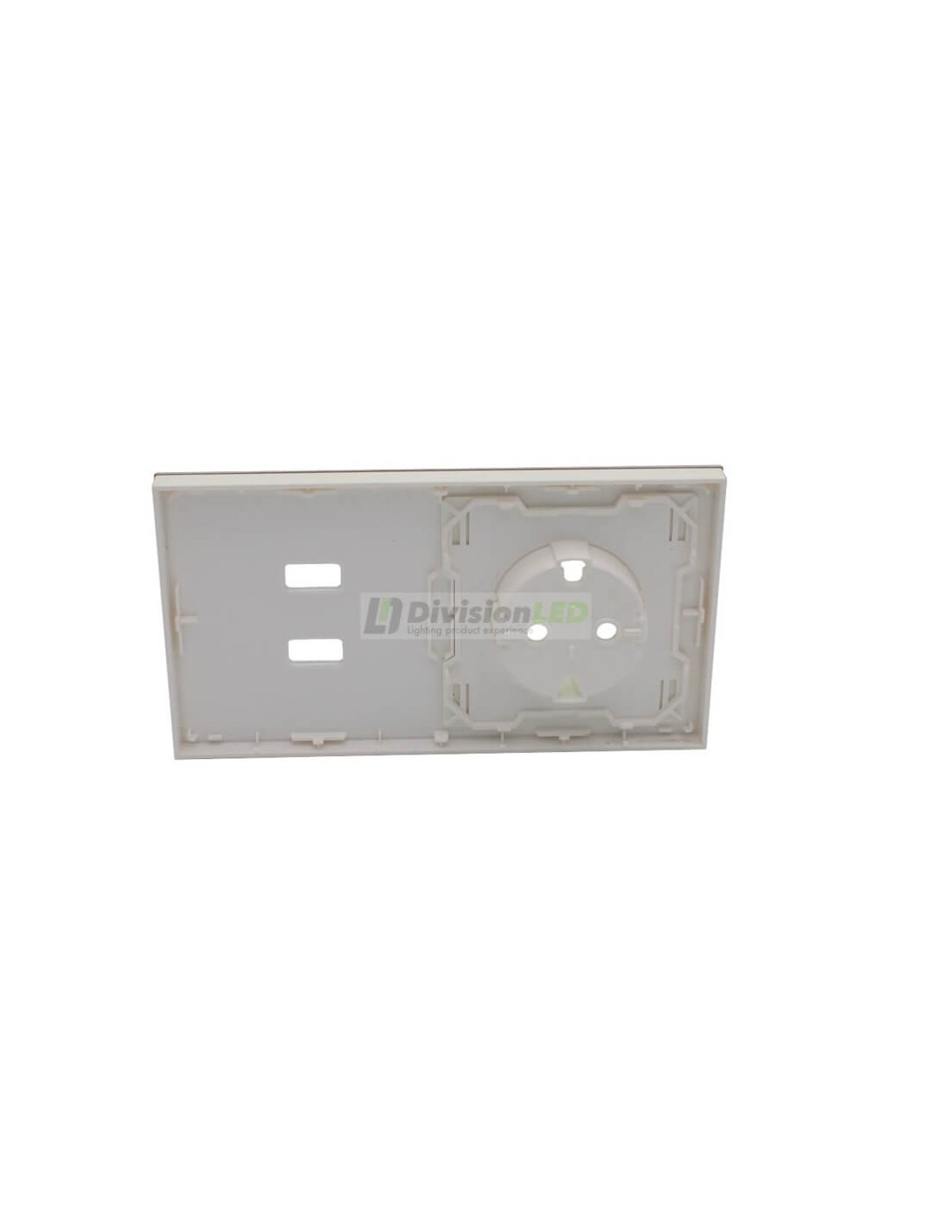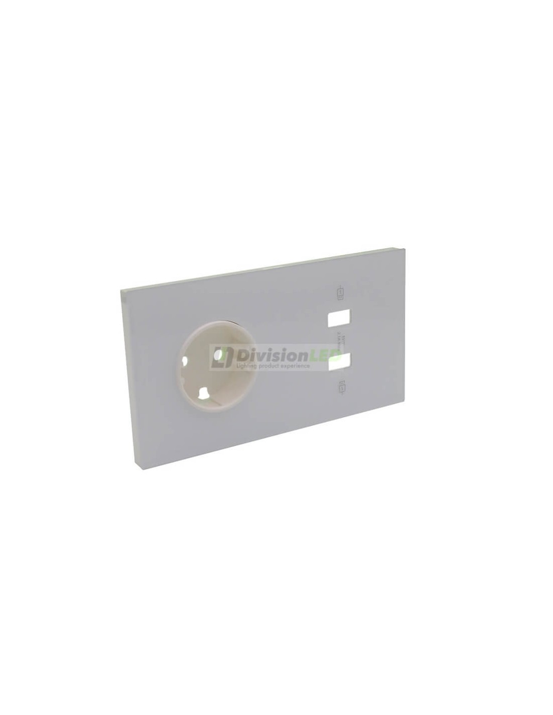 - Kit front de 2 elementos con 1 base de enchufe Schuko y 2 cargadores USB.