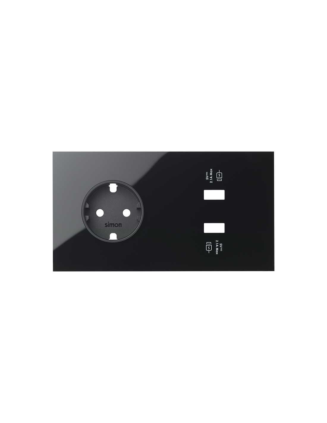 SIMON 10020210-138 Kit frontal con 2 elementos+base+cargador USB doble carga rápida negro SIMON 100