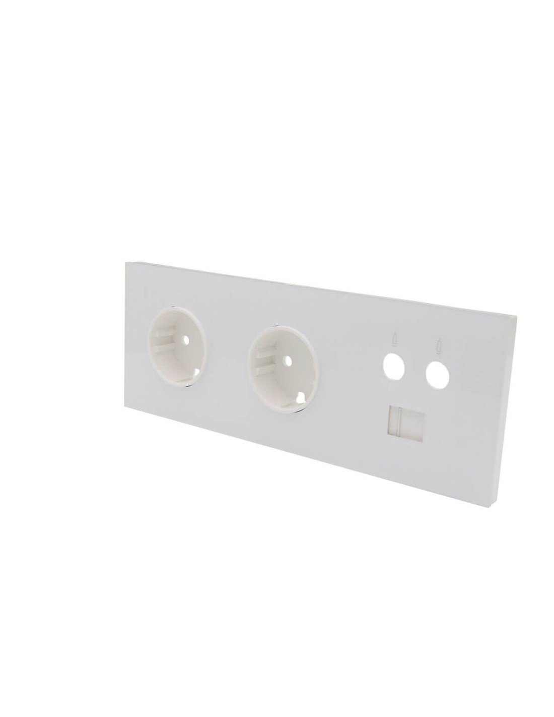 Kit front para 3 elementos con 2 bases de enchufe schuko y 1 toma R-TV+SAT única con 1 conector RJ45 blanco Simon 100. Los kits de mecanismos de la serie Simon 100 han sido especialmente preparados para hacer la instalación más cómoda y rápida, a la vez que aportan soluciones muy funcionales a los usuarios. El kit front para 3 elementos integra 2 bases de enchufe schuko y 1 toma R-TV+SAT única con 1 conector RJ45, por lo que es perfecto para proyectos que requieran tomas de datos, imagen y audio. Se presenta con un sencillo acabado en color blanco, donde los 3 elementos aparecen perfectamente alineados. El tipo de embornamiento de los enchufes no requiere pelado de cables ni herramientas adicionales, ya que se realiza mediante un corte, con un sencillo clickEl embornamiento de la toma R-TV+SAT debe realizarse a tornillo. Este kit es apto para instalar empotrado en cualquier pared y en instalaciones de hasta 16A de intensidad para el enchufe, y tomas R-TV+SAT acordes al reglamento ICT vigente.