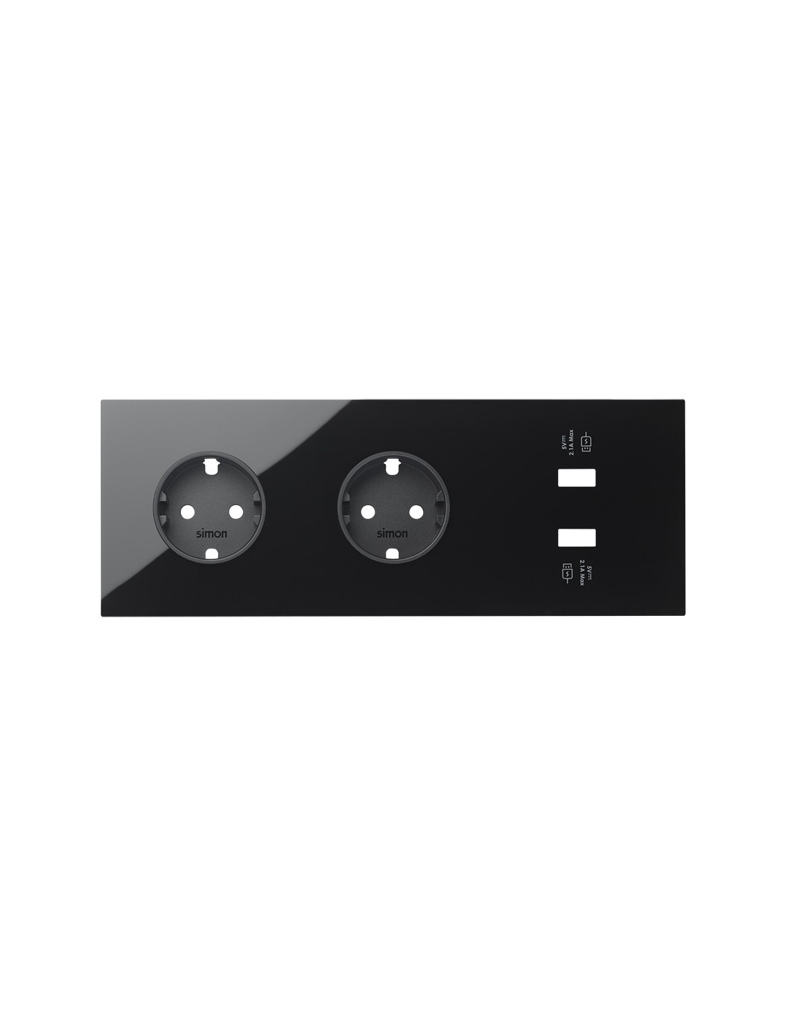Kit frontal 3 elementos 2 bases + cargador USB doble carga rápida Serie 100 negro. La serie Simon 100 está diseñada para facilitar a las personas la interacción con ella. Por eso es la más intuitiva, sencilla y cómoda en cuanto a su uso. Su estética elegante, sus distinguidos colores y sus acabados sutiles pero a la vez perfectos te hacen admirar, una vez más, la belleza de la simplicidad. Una estética creada con un solo objetivo: que su funcionalidad sea tan intuitiva que creas que puedas accionarlo con los ojos cerrados.