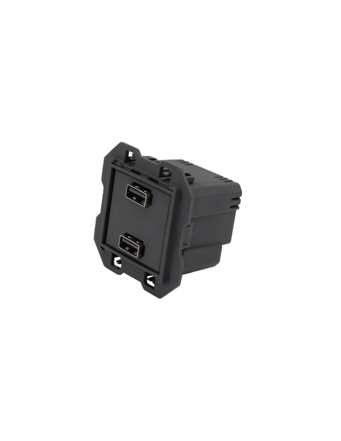 Cargador 2xUSB 2.0 5 V/DC Tipo A hembra Simon 100. Compatible con la serie 100 de Simon, una colección que hace honor al centenario de la firma y marca una nueva era para el mundo de los mecanismos eléctricos, que a partir de ahora ofrecerán un sinfín de oportunidades.Esta toma de cargador tiene 2 bocas USB y el sistema de embornamiento es rápido y seguro mediante tornillo. Permite la carga de diferentes dispositivos como teléfonos móviles, tablets, etc.La intensidad máxima es 2,1 Amperios y la tensión de salida es de 5 Vdc, por consiguiente, es apta para prácticamente la totalidad de dispositivos del mercado. Utiliza una fuente de alimentación de 230 V.Las palancas se adaptan perfectamente al dedo, son grandes y sencillas de presionar. El repicado (puente) se hace por la otra cara, de esta forma, los cables quedan mucho mejor repartidos y se facilita en gran medida la introducción de la base en el cajetín.