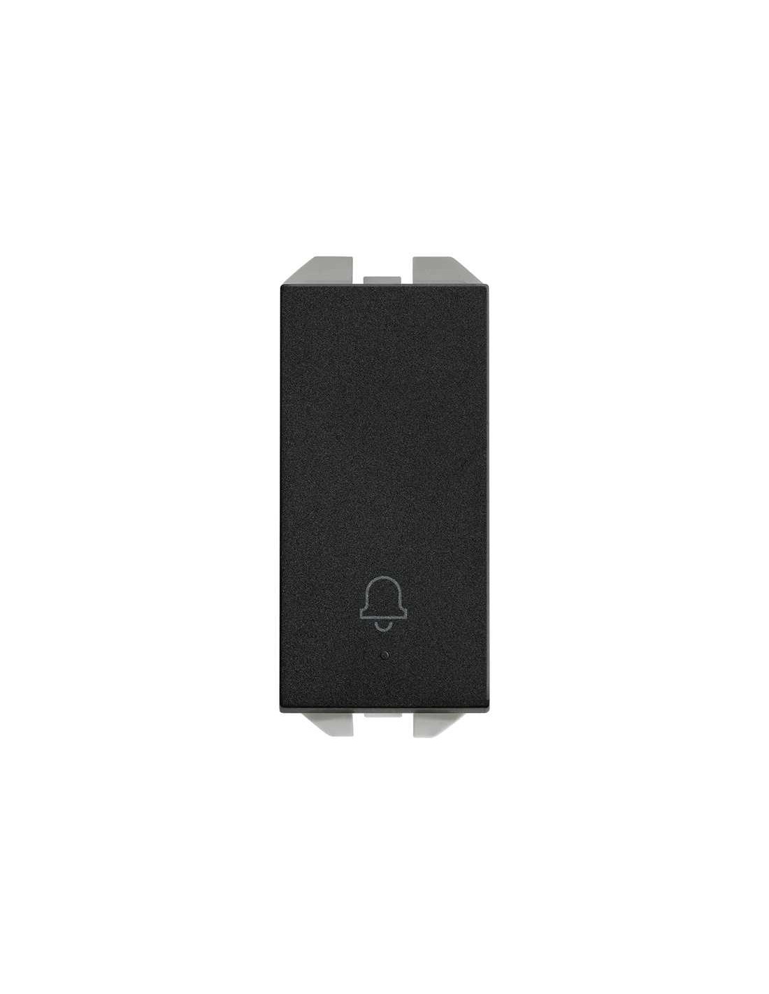 Pulsador con grabado campana 10A y módulo estrecho negro mate