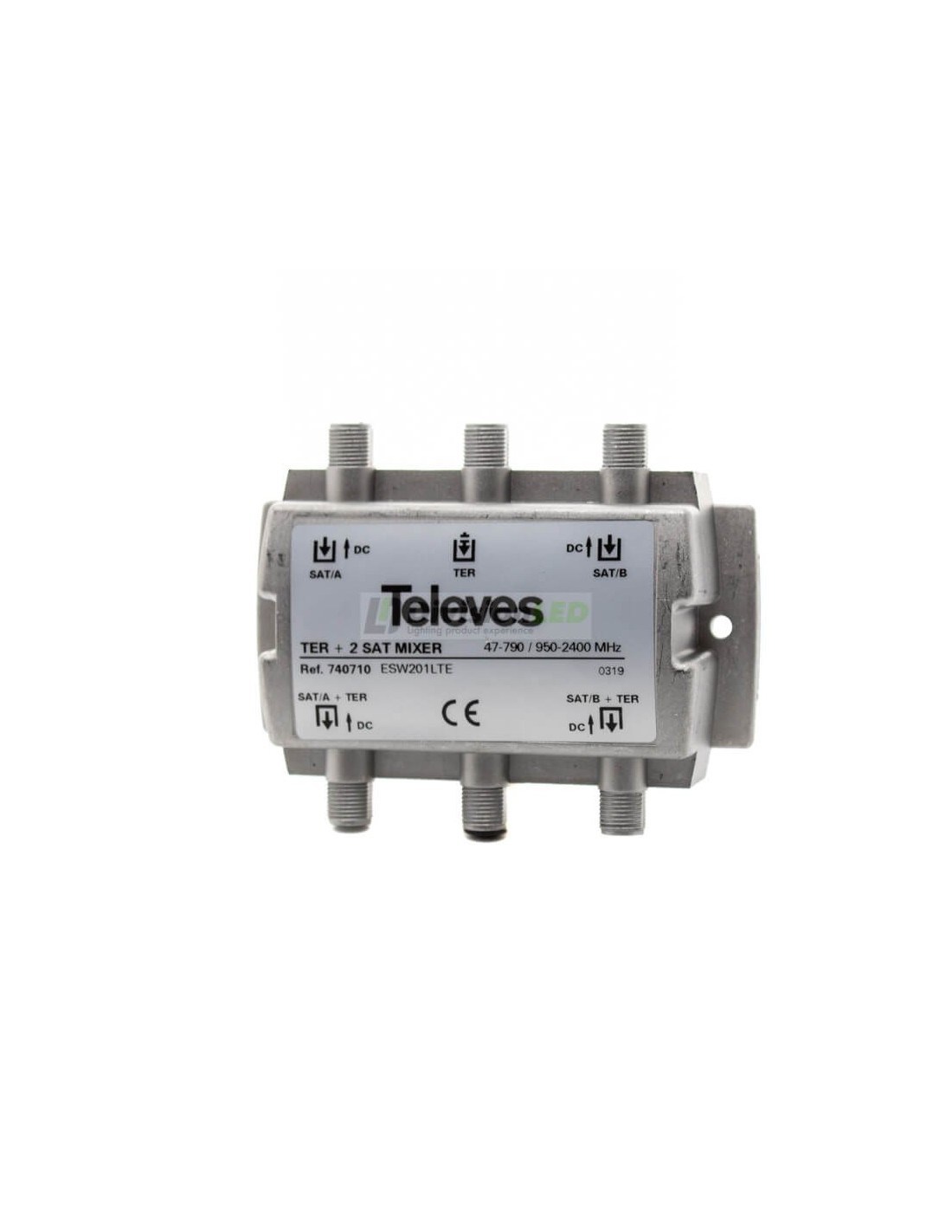 El mezclador repartidor ICT 3 entradas MATV-FI-FI Televes 740710 está pensado para mezclar diferentes bandas terrestre y satélite. En consecuencia te permite mezclar una señal terrestre y dos señales satélites recibidas por distintas antenas.