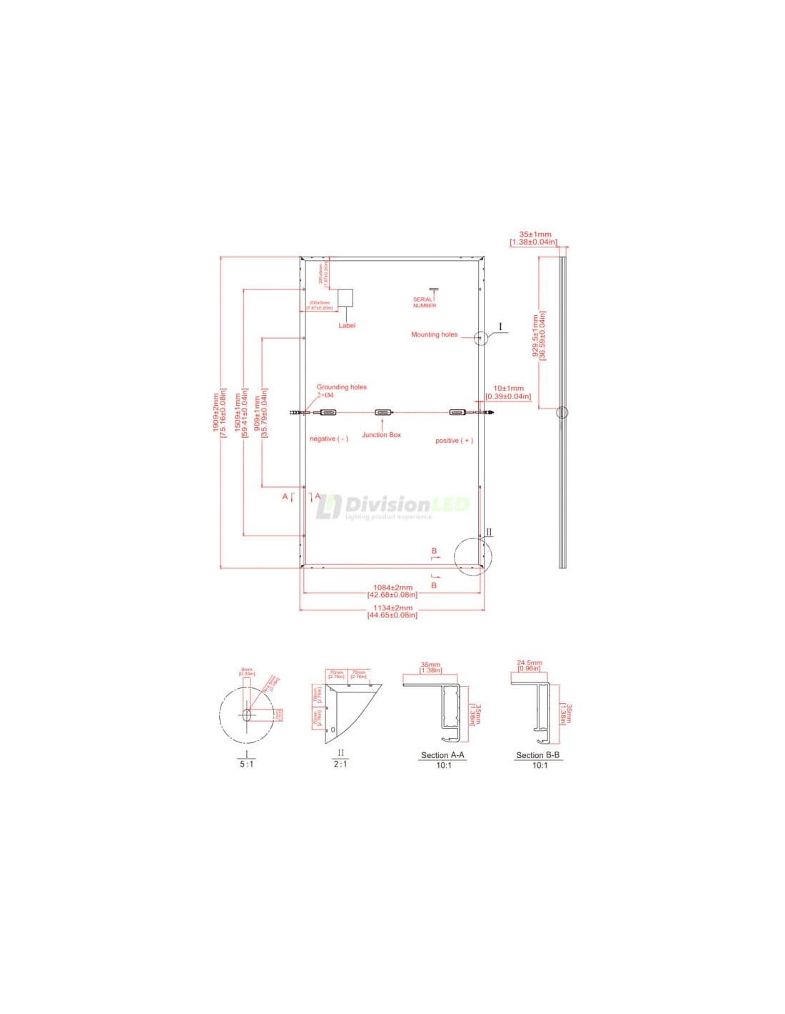 Dimensión de panel: 1909 x 1134 x 35 mm.