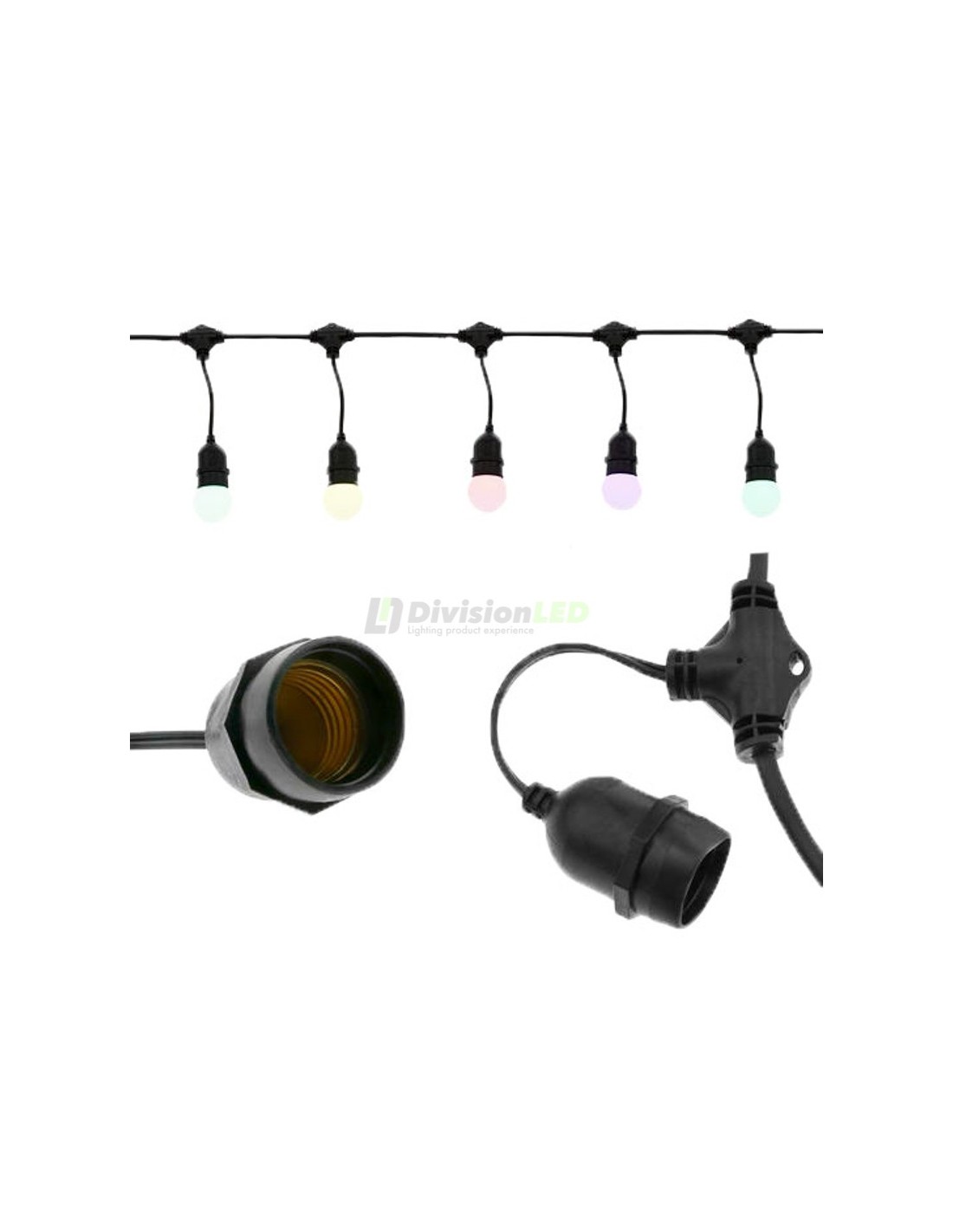 La Guirnalda 10 casquillos E27 para exterior IP65 es un elemento decorativo perfecto para exteriores. Tiene una composición de 10 casquillos E27 para su completo uso. Además y gracias a su protección IP65 es perfecto para exteriores.