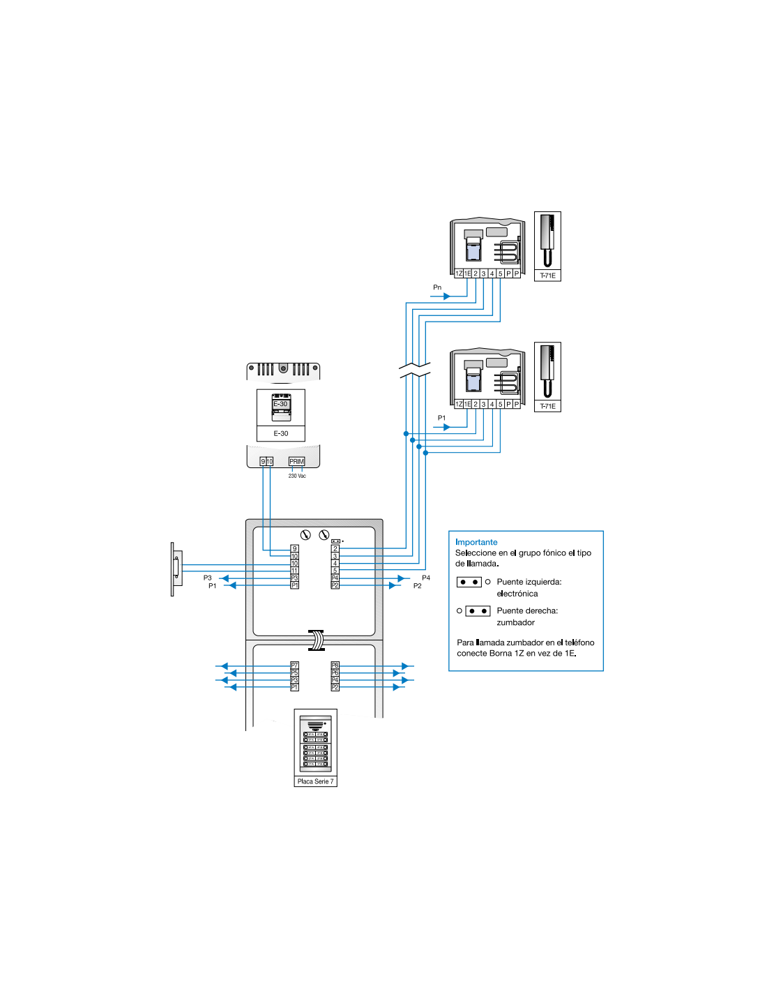 Esquema de montaje TEGUI 375011 Kit portero A1 con placa y teléfono serie 7