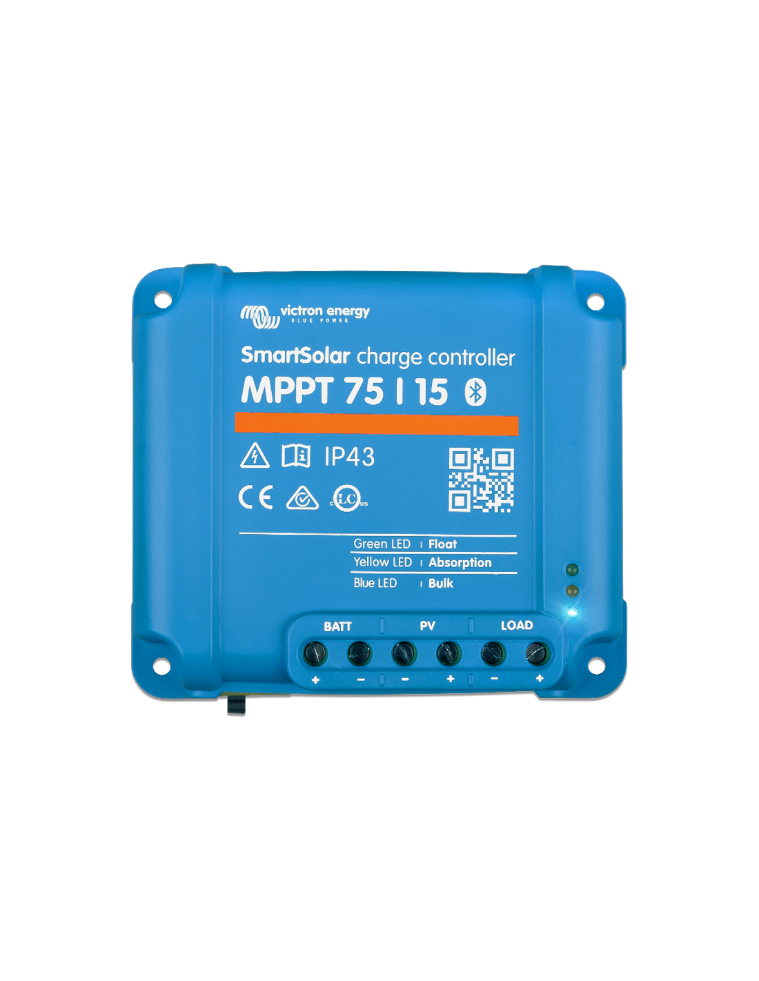 El Regulador Victron SmartSolar MPPT 75/15 SCC075015060R es un controlador de tensión hasta 75V y corriente de carga hasta 15A. El controlador solar se encarga de controlar la entrada a las baterías de la energía generada en los paneles solares. Pertenece a la familia de reguladores de la Victron SmartSolar MPPT, una de las más modernas y demandadas del mercado. Tiene un seguimiento ultrarrápido de máxima potencia (MPPT) que le permite mejorar la recogida de energía hasta el 30%. El regulador Victron SmartSolar MPPT 75/15 SCC075015060R es especialmente efectivo con cielos nubosos o intensidad de luz cambiante. Además este dispositivo tiene una eficiencia excepcional de conversión cercana al 98% que le hacen realmente efectivo.