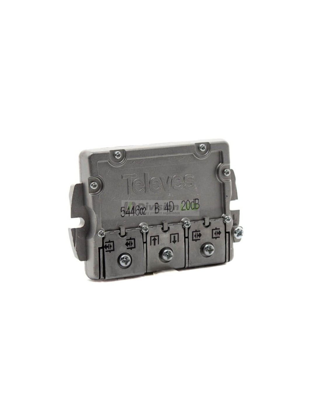 El derivador EasyF 4 direcciones 20dB Televes 544602 es un derivador que incorpora 4 derivaciones y sistema de conexion EasyF. Este derivador incorpora 4 salidas y está indicado para instalaciones con señales de SMATV.