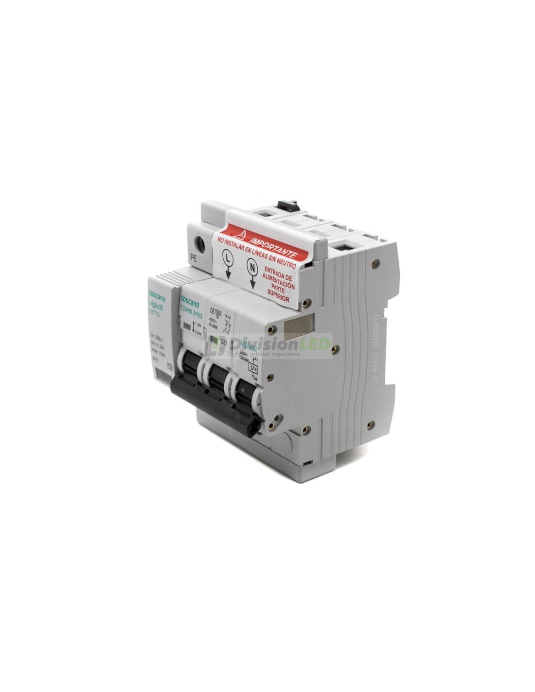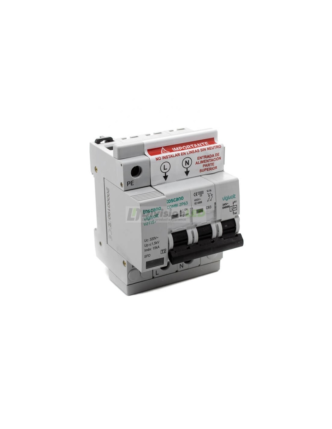 Toscano 10002473 COMBI 2P63T15 Protector sobretensión permanente y transitoria + IGA monofásico 2x63A