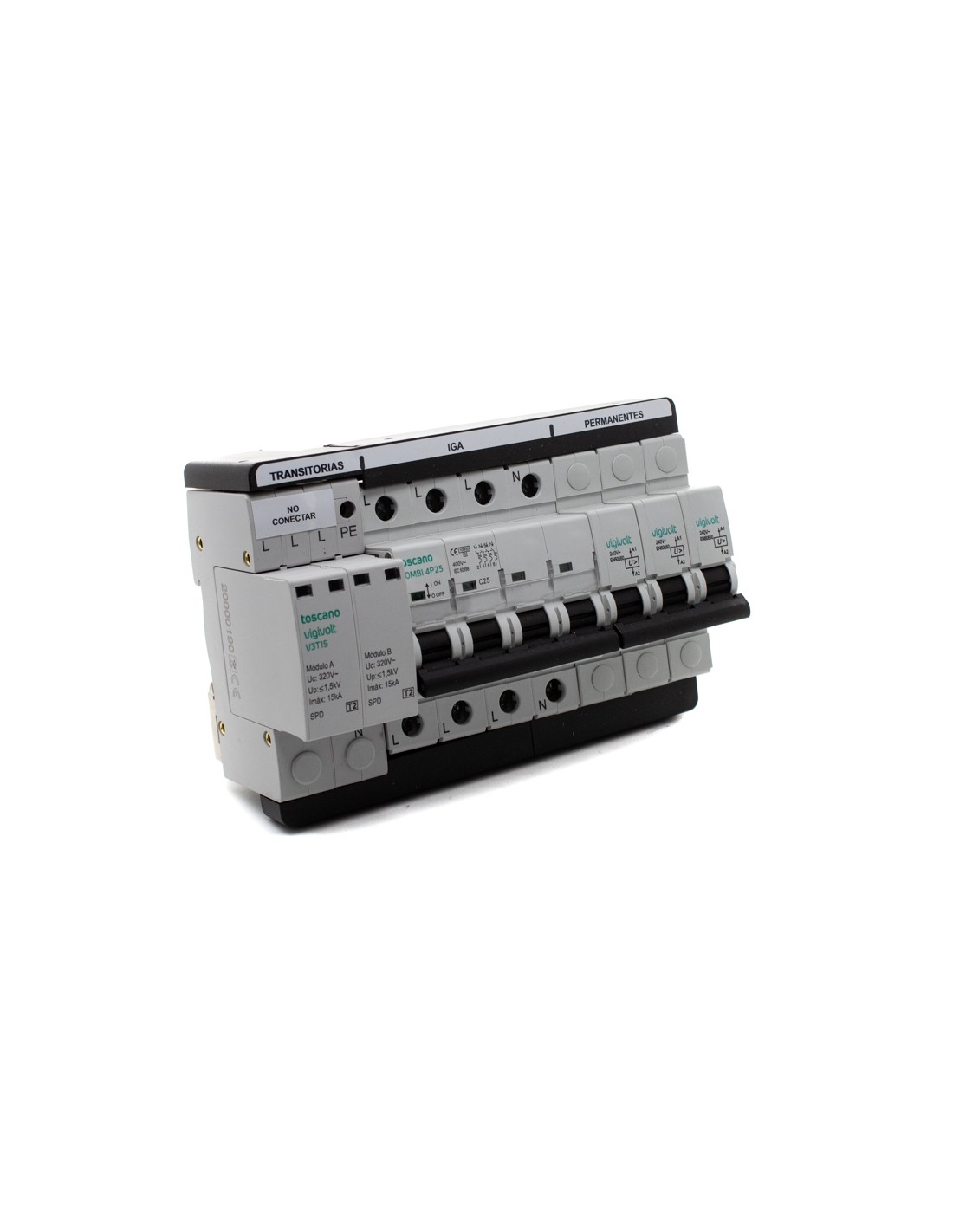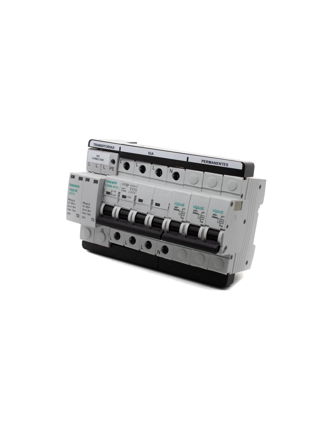 Toscano 10002474 COMBI 4P25T15 Protector sobretensión permanente y transitoria + IGA trifásico 4x25A