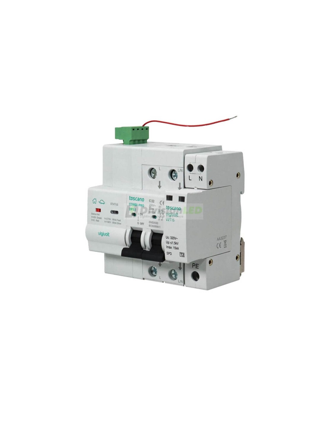 El Toscano 10002894 COMBI-PRO 2PT 2P32T15 Protector sobretensión perm. y trans. + IGA monofásico 2x32A reconexión automática está pensado para proteger los dispositivos eléctricos de picos de tensión. Su principal funcionalidad es la de protección contra sobretensiones ya sean transitorias o permanentes. Tiene como principal característica la reconexión automática.