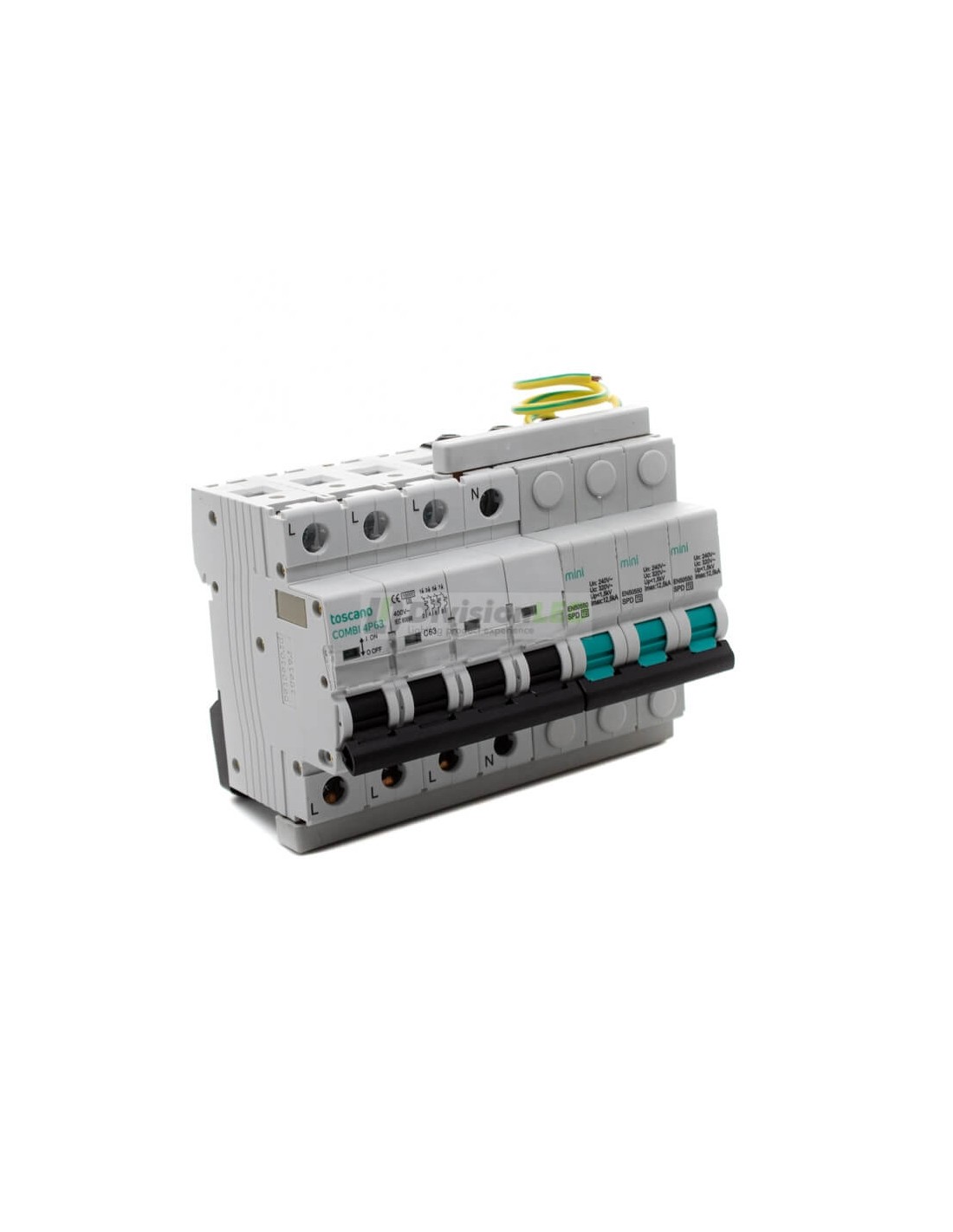 Toscano 10002918 COMBI-MINI 4P63T15 Protector sobretensión permanente y transitoria + IGA trifásico compacto 4x63A