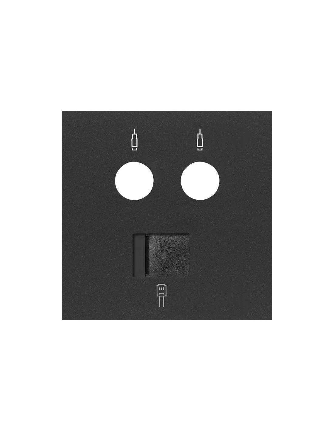 SIMON 10000072-238 Tapa con 2 módulos para toma R-TV+SAT RJ45 negro mate SIMON 100