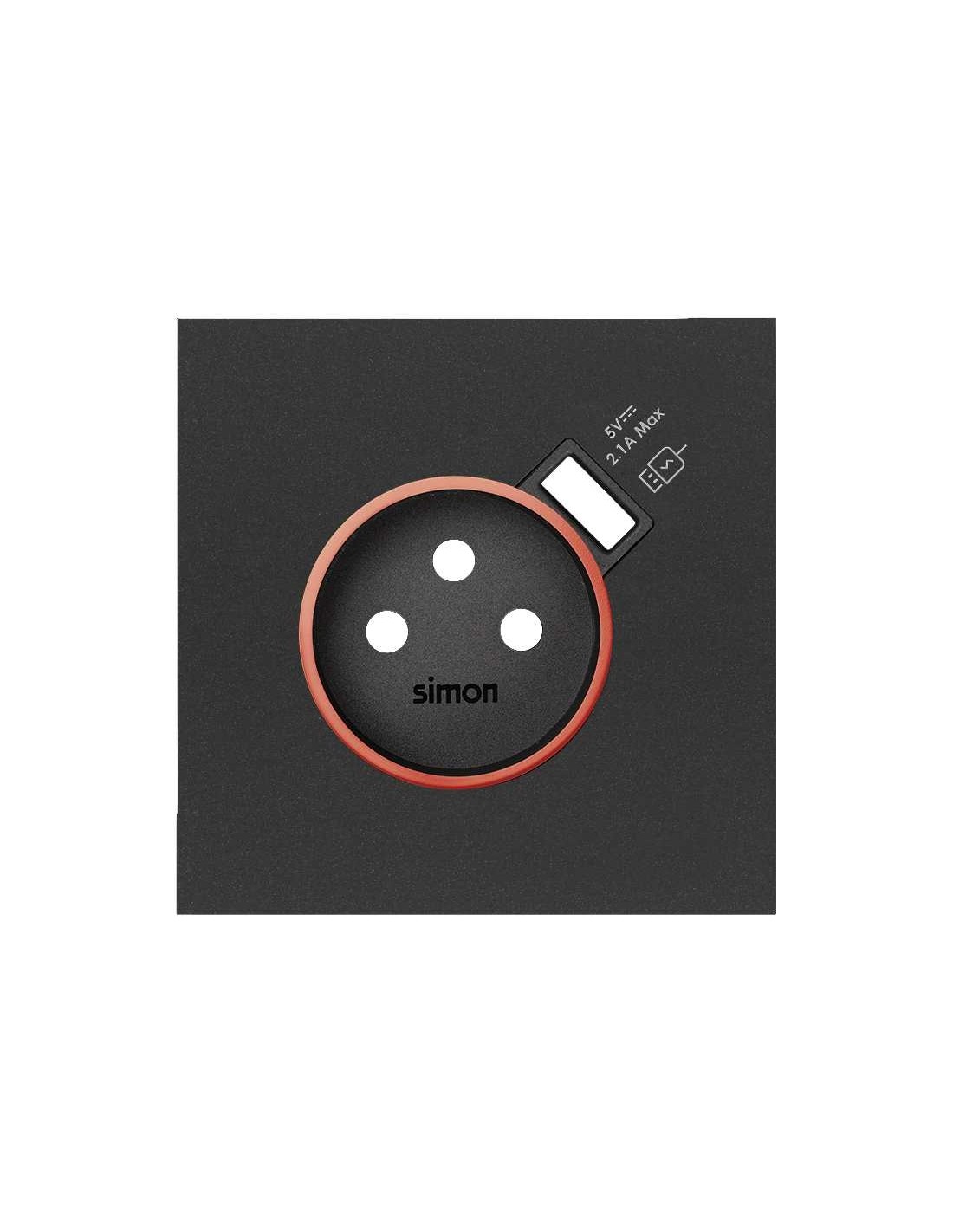 SIMON 10000137-238 Tapa con aro rojo para base schuko con cargador USB negro mate SIMON 100